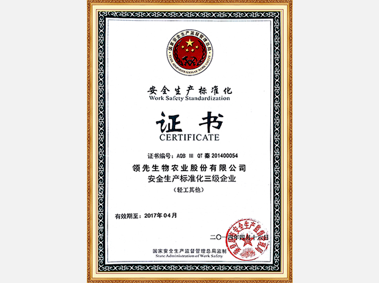 安全生產(chǎn)標準化企業(yè)證書